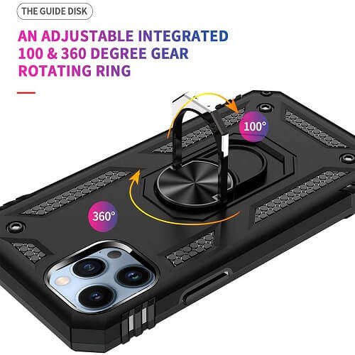 This Ring Kickstand Phone Case has excellent design ONLY for Apple iPhone 13 Pro. It is not compatible with any other models. You can use the built-in S Ring as a Kickstand for hands-free viewing at the perfect angle. You can also rotate it 360 degrees horizontal & 90 degrees vertical rotation flexibility