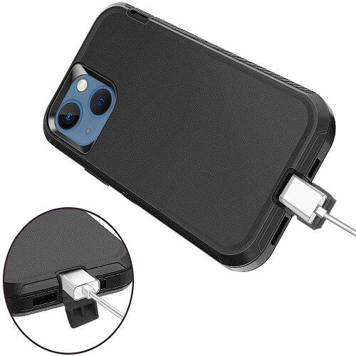 This Apple iPhone 14 Plus defender case with 4 shockproof corners bumper cushions offers your phone high grade drop protection. The dust proof plug design stops dust, dirt, and also lint from clogging your jacks and inputs.