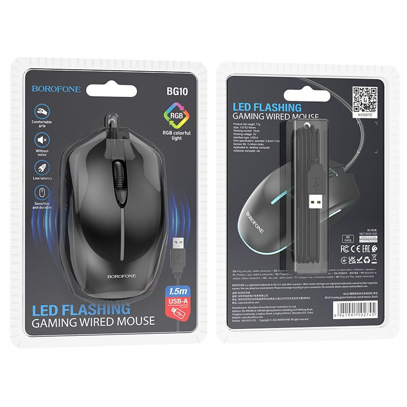 BOROFONE BG10 Game Luminous Wired Mouse Wired USB 3-Button Optical Mouse Smooth Fast Connection Office Work Efficient Computer Notebook Mouse Length 1.5M