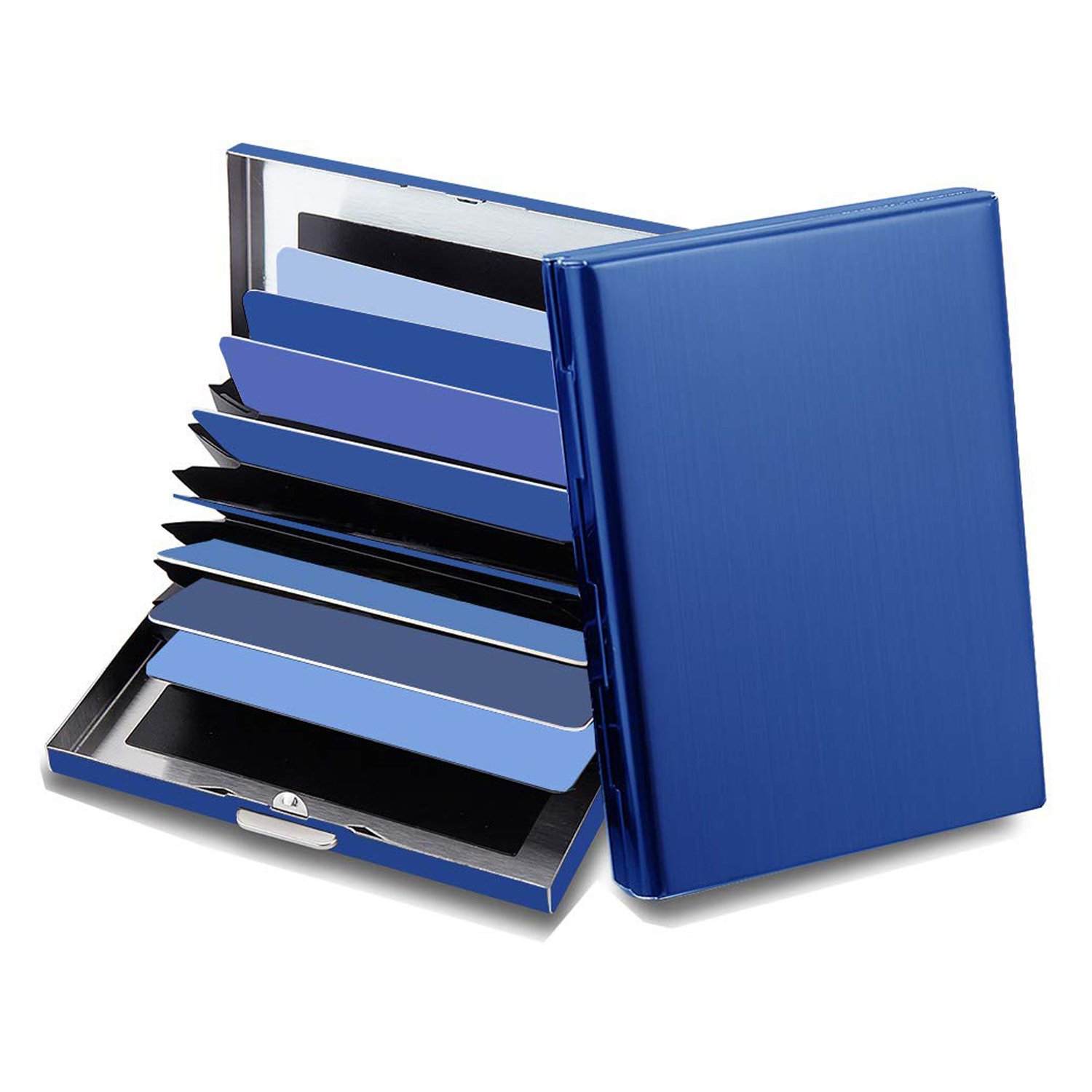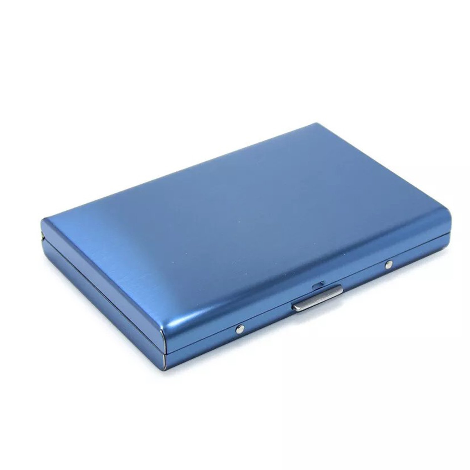 Card Holder Case Men Short Wallet Rfid Safe Anti-theft Package Box Aluminum Alloy Metal Money Clip Lock Card Bags – Blue