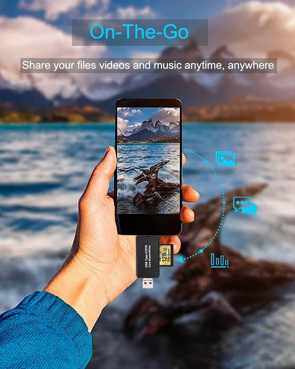 - 【Best Partner for Camera-share Photos Any Time】: While traveling, you can send the photos that you took with the camera via a USB sd card reader from sd card micro to your cell phone, and share the beautiful moments of your journey with your best friends or family. Playback videos/music directly from external memory without occupying space on devices.