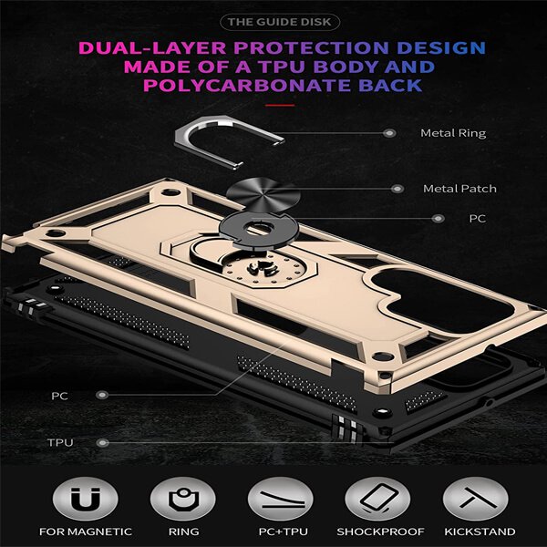 – This gratefully Phone Case with ring kickstand is made of high-quality PC & TPU. It also provides ultra protection against daily scratches, marks, and scrapes. It can also protect from the impact of accidental falls or drops.