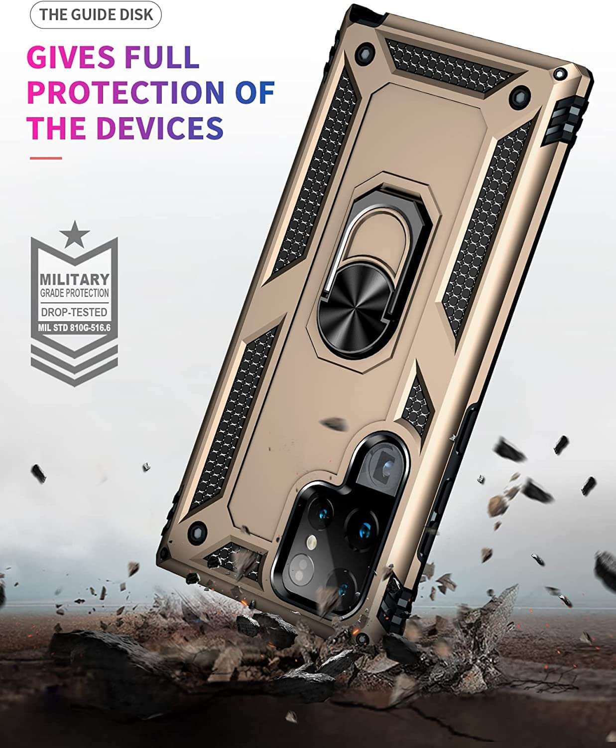 Raised Bezels are extra protection for screen & camera, against scratches and reduce other damages. Therefore, you can easily access all the controls and features. Integrated RING GRIP HOLDER for comfortable & secure single-hand operation.
